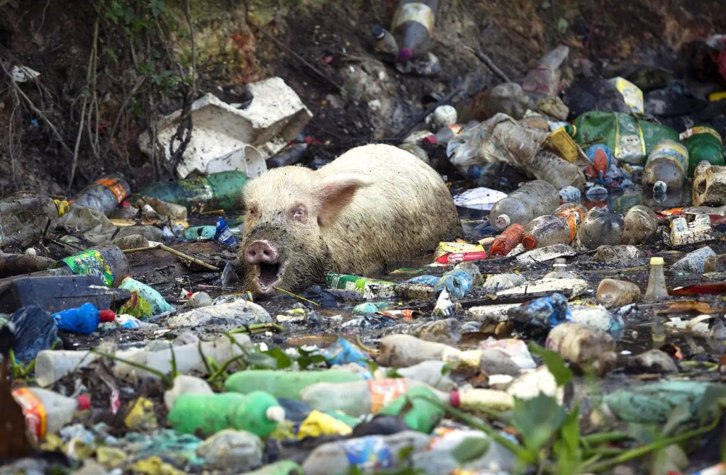 တရုတ်နိုင်ငံ ဝူဟန်မြို့ရှိ ညစ်ညမ်းရေကန်တစ်ခု