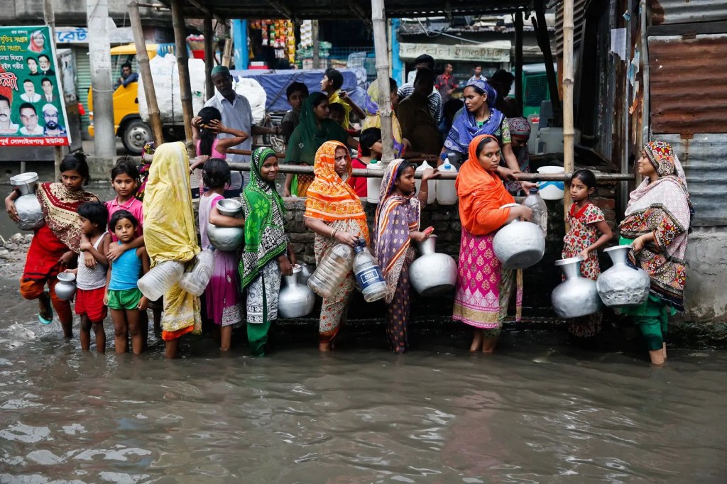 ဘင်္ဂလားဒက်ရှ်နိုင်ငံ ဒါကာမြို့တော် သောက်ရေအတွက်တန်းစီနေသူများ