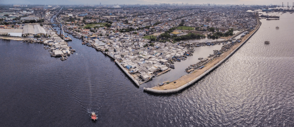 ဂျကာတာ၏ရေလွှမ်းမိုးမှုကို လောလောဆယ် တစ်စိတ်တစ်ပိုင်းကာကွယ်ပေးနေသည်မှာ ဂျာဗားပင်လယ်အော် အစပ်ရှိ ကမ်းရိုးတန်းနံရံဖြစ်သည်။ ကမ်းရိုးတန်းနံရံကို တည်ဆောက်ခြင်း၏ ရည်ရွယ်ချက်မှာ မြေအောက်ရေ အထုတ်လွန်၍ နိမ့်ဆင်းနေသော ဂျကာတာ မြေပြင်ကို မြင့်တက်လာနေသည့် ပင်လယ်ရေ၏ လွှမ်းမိုးမှုမှ ကာကွယ်ရန် ဖြစ်သည်။ သို့သော် ယင်းကမ်းရိုးတန်းနံရံ ကိုယ်နှိုက်ကပင် တစ်နှစ်လျှင် ၁၀ လက်မခန့် ကျွံဝင်နေရာ ယင်းနံရံကြီးသည် ၂၀၃၀ ခုနှစ်၌ ပင်လယ်ရေအောက် ရောက်သွားနိုင်သည့်အလားအလာများကို မြင်နေရသည်။ နံရံ၏ အချို့သော အနိမ့်ပိုင်းနေရာများတွင် နံရံ၏ထိပ်နှင့် ပင်လယ်ရေပြင်သည် ပေအနည်းငယ်မျှသာ ကွာတော့သည်။ ၂၀၀၂ ခုနှစ်က ဆောက်လုပ်ခဲ့သော ကမ်းရိုးတန်းနံရံသည် ဂျကာတာကို အကာအကွယ် ပေးရန် မလုံလောက်ကြောင်း ၂၀၀၇ ခုနှစ် အကြီးအကျယ် ရေလွှမ်းမိုးမှုက သက်သေပြလိုက်သည်။