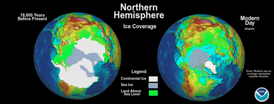 လွန်ခဲ့သည့် နှစ်ပေါင်း ၇၀၀၀၀ ခန့်ကမူ ယခုအင်ဒိုနီးရှားကျွန်းစုရှိ တိုဘာမီးတောင်ပေါက်မှုမှ ပြာနှင့် ဖုန်မှုန့်ပေါင်း ကုဗမိုင် ၆၇၀ ခန့်လေထုထဲ ဝင်ရောက်ခဲ့ရာ နဂိုကအေးနေပြီး ဖြစ်သည့် ရာသီဥတုကို ပိုအေးစေခဲ့သည်။ ယင်းနောက်ပိုင်းတွင် ရေခဲခေတ်များ ပေါ်လာလိုက် ပုံမှန်ပြန်ဖြစ်လိုက်နှင့် ပြောင်းလဲနေခဲ့ရာ နှစ်တစ်သောင်းခန့်ကြာသည့် ရေခဲခေတ်ကြား ကာလများတွင် အပူချိန် အနည်းငယ်စီ တက်ခဲ့သည်။ နောက်ဆုံးရေခဲခေတ်သည် လွန်ခဲ့သော နှစ်ပေါင်း ၁၂၀၀၀ ခန့်က အဆုံးသတ်ခဲ့သည်။ ယင်းရေခဲခေတ်၏ နိဂုံးပိုင်းတွင် ကမ္ဘာ့အပူချိန်သည် ယခုထက် ၅ ဒီဂရီ စင်တီဂရိတ် လျော့နည်းသည်။ ကမ္ဘာစတင် မွေးဖွားသော နှစ်သန်းပေါင်း ၄၆၀၀ ရှိပြီ ဖြစ်သည့်အချိန်ကို လွန်ခဲ့သည့် သန်းခေါင်ယံဟု သဘောထားလျှင် စတင်ပေါ်ပေါက်ပြီး ၂၄ နာရီကြာသည့် ယခုအချိန်ကို ရေခဲခေတ်ကြားကာလဟု သတ်မှတ်ကြသည်။
