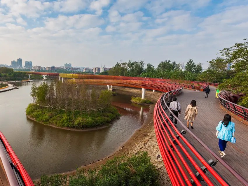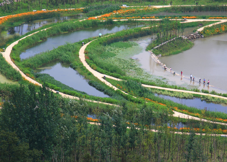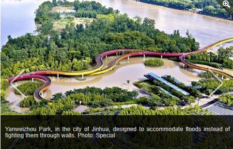 တရုတ်နိုင်ငံ မြို့ပြဖွံ့ဖြိုးရေးလမ်းညွှန်ချက်တွင် မြို့ကြီးအချို့ရှိ ပလက်ဖောင်းများ လမ်းများ ကားပါကင်များကို မိုးရေစုပ်ယူနိုင်သည့် ရေမြှုပ်နှင့်အလားတူသောပစ္စည်းများဖြင့် တည်ဆောက်ရန်၊ မိုးရေထိန်းသိမ်းနိုင်သော ဥယျာဉ်များ၊ ရေတိမ်ဒေသများ ထားရှိရန် စသည်တို့ကိုထည့်သွင်းလိုက်သည်။