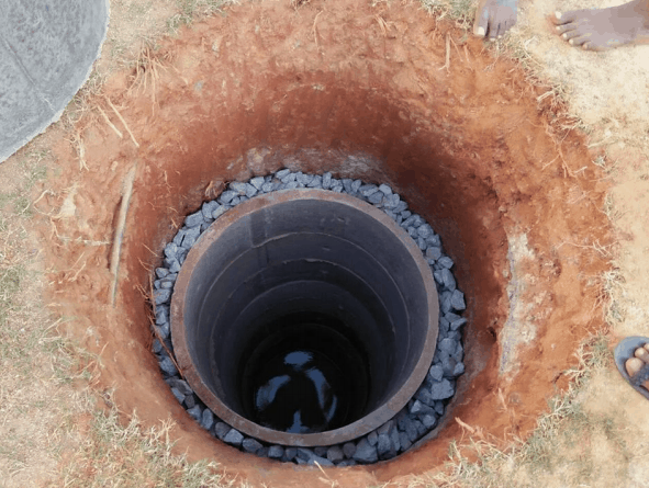 ရေစိမ့်ဝင်နိုင်သောသဲကြောရှိရာသည် နက်လွန်းပါက ကုန်ကျစရိတ်များသဖြင့် ပုံပါအတိုင်း တွင်းဝကျယ်ကို ၁၀ ပေခန့်အနက်အထိသာတူးပြီး ကျန်အပိုင်းကို ဆန်ခါပေါက်ပါသောပိုက်ဖြင့် သဲကြောရှိရာအထိ ရိုက်သွင်းကြသည်။