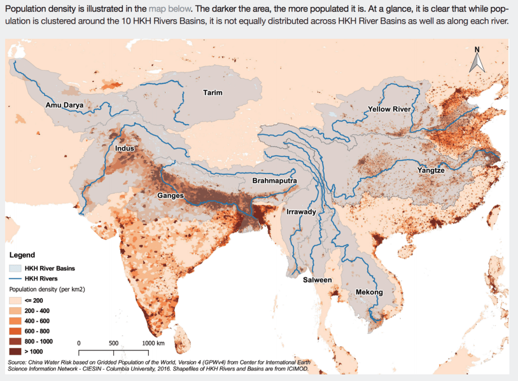 မြစ်ဆယ်စင်းနှင့် လူဦးရေသိပ်သည်းမှုကို ဖော်ပြသော ပူးတွဲပုံအရ ဟိန္ဒူကွတ်ရှ် ဟိမဝန္တာ ရေခဲပြင် အရည်ပျော်မှုကြောင့် သောက်သုံးရေ အများဆုံးအခက်တွေ့မည့်နိုင်ငံများမှာ ပါကစ္စတန်၊ အိန္ဒိယ၊ ဘူတန်၊ နီပေါနှင့် တရုတ်တို့ ဖြစ်သည်။