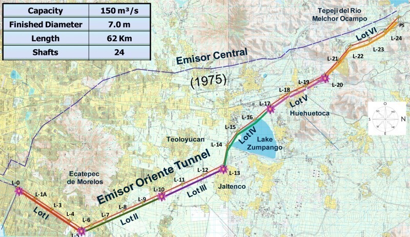 ဤကဲ့သို့ နိမ့်ကျ နစ်ဝင်လျက်ရှိသော မက္ကဆီကိုစီးတီး မြို့ပြဒေသကြီးအား ရေတွင် ပေါလောပေါ်(afloat) စေနိုင်မည့် ပရိုဂျက်ပေါင်း များစွာကို ရေးဆွဲ စီမံပြီး ကြိုးပမ်း ဆောင်ရွက်လျက်ရှိရာ အရှေ့ပိုင်း ရေဆင်း ရေနှုတ်လိုဏ်ခေါင်း (Eastern Drainage Tunnel) စီမံကိန်းလည်း တစ်ခု အပါအဝင် ဖြစ်သည်။