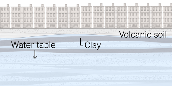သို့သော် လွန်ခဲ့သော ၂၀ ရာစုနှစ်အတွင်းတွင် တက်(စ)ကိုကိုရေအိုင် (Texcoco Lake)၏ အောက်ခင်းကြမ်းပြင်မှ မြေအောက်ရေများကို အလွန်အကျွံထုတ်ယူသုံးစွဲမှု (over-extraction) ပြုလုပ်ခဲ့ခြင်းကြောင့် မက္ကဆီကိုစီးတီး မြို့ပြဒေသကြီး၏ အောက်ခံမြေစေးလွှာ (clay foundation)များမှာ ထိခိုက် ပြိုကွဲပျက်စီးမှု ဖြစ်ခဲ့ရသည်။