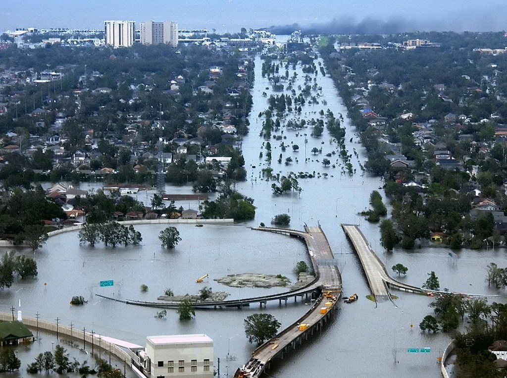 အတိတ်သမိုင်းတွင် ကိုလိုနီနယ်ချဲ့တို့က ပြင်သစ်ပိုင်လူဝစ်ဆီယားနား (French Louisiana) ၏ မြို့တော်အဖြစ် နယူးအော်လင်းမြို့ (New Orleans) ကို ရွေးချယ်ခဲ့ရခြင်း၏ အဓိက အကြောင်းရင်း တစ်ရပ်မှာ ယင်းမြို့၏ ကုန်းတွင်းကျသော တည်နေရာ (inland locale)ကြောင့် ဖြစ်သည်။ ယနေ့ မျက်မှောက်ကာလတွင်မူ ယင်းမြို့သည် အမေရိကန် ပြည်ထောင်စုနိုင်ငံ၊ လူဝစ်ဆီယားနားပြည်နယ် (Louisiana State) ၏ နယူးအော်လင်းမြို့ (New Orleans) ဖြစ်နေပေသည်။ သို့စေကာမူ နယူးအော်လင်းမြို့တွင် ရှေးယခင်က ရှိခဲ့ဖူးသော မြို့ကို ရေလွှမ်း ရေကြီးမှု ဘေးအန္တရာယ်မှ အကာအကွယ် ပေးနိုင်ခဲ့သည့် ရေကာတာများ၊ တာတမံများ ကျိုးပေါက် ပျက်စီးကုန်ကြပြီဖြစ်၍ ယခုအခါ အင်အား ပြင်းထန်သော အပူပိုင်းမုန်တိုင်းကြီးများ၏ ဝင်ရောက် တိုက်ခတ် ဖျက်ဆီးမှုကို ခံစားရမည့် ဖြစ်တန်ခြေမှာ ပိုမို များပြားလာသည်။ အကယ်စင်စစ် အမေရိကန်ပြည်ထောင်စု နိုင်ငံတွင် လူအများ နှစ်သက်သဘောကျသော ပထဝီဝင် နယ်မြေတစ်ခု ဖြစ်သည့် နယူးအော်လင်း မြို့ပြဒေသကြီး၏ ဧရိယာ တစ်ဝက်ခန့်မှာ ပင်လယ်ရေမျက်နှာပြင်တွင် (သို့မဟုတ်) ပင်လယ်ရေမျက်နှာပြင် အောက်တွင် တည်ရှိနေပေသည်။