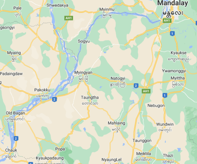 မန္တလေးအနီး မြစ်ကြောင်း အနောက်ဘက်ချိုးကွေ့မှု