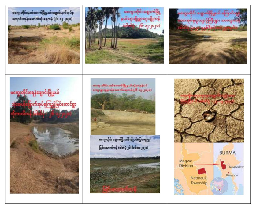 လတ်တလော မကွေးတိုင်း၊ နတ်မောက်မြို့နယ် ချောက်မြို့နယ်တွေမှာ ပုံမှန်အားဖြင့် ပူပြင်း ခြောက်သွေ့သည့် ရာသီတွင် အပူချိန် ၄၀ ဒီဂရီ ဆဲလ်စီယပ်ထိ ရောက်လေ့ရှိပြီး ယနေ့ အပူချိန်သည် ၄၀ ဒီဂရီဆဲလ်စီယပ်အထက် ၄၅ ဒီဂရီဆဲလ်စီယပ်ကိုရောက်နေပြီ၊ ဒါနွေမရောက်သေဘူး။ ရေငွေ့ပြန်နှုန်းမှာ မိုးရွာသွန်းသည့်နှုန်းထက် နှစ်ဆများပြားနေပါသည်။