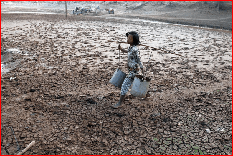 ရာသီဥတုပြောင်းလဲမူ၏ ဘေးအန္တရာယ် ကျရောက်ခြင်း အဆင့်သတ်မှတ်ချက်အရ မြန်မာနိုင်ငံသည် တစ်ကမ္ဘာလုံးမှာ ထိခိုက်အလွယ်ဆုံး ဒဏ်အခံရဆုံး နိုင်ငံသုံးနိုင်ငံတွင် ပါဝင်နေကြောင်း ကုလသမဂ္ဂ အစီရင်ခံစာ၌ ဖော်ပြထားသည်။ မြေပေါ်ရေများ ဖြစ်သည့် ကန်ချောင်းဆည်မြောင်းတို့သည်လည်း ရေအပြည့်အဝ မသိုလှောင်နိုင်ပြီ။ မြေအောက်ရေ ထုတ်ယူသုံးစွဲမူ တနှစ်ထက်တနှစ် များပြားလာပြီး မိုးရွာသွန်းမှု နည်းလာသောအခါ မြေအောက်ရေ မျက်နှာပြင်သည်လည်း နိမ့်ကျလာသည်။ ရေထုတ်ယူရရှိမှုသည်လည်း လျော့နည်းလာသည်။ မြန်မာ တစ်နိုင်ငံလုံး မြေအောက်ရေ ဥပဒေမရှိဘဲ သုံးစွဲလာသည်မှာ နှစ် ၂၀ဝ နီးပါး ရှိနေပြီ။ အစိုးရမင်းများကလည်း မြေအောက်ရေကို စိတ်မဝင်စား။ မြေပေါ်ရေလည်း ဒီအတိုင်းပဲ။ ရှေးရိုး အစဉ်အလာ အတိုင်း၊ မြေရှိရေရှိတယ် မှတ်နေကြသည်။ ရေအရင်းအမြစ်များ ရေရည်တည်တန့်နိုင်မှုအတွက် ရင်လေးစရာဖြစ်တော့သည်။