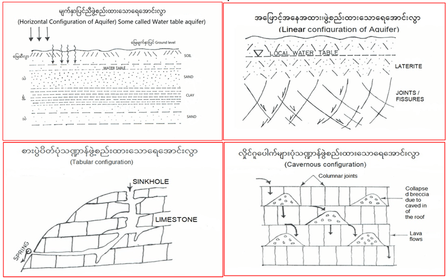 ၄။ မြေအောက်ရေအောင်းလွှာ ဖြစ်တည်ဖွဲ့စည်းပုံ၊ သိုလှောင်ထားရှိပုံ ယေဘုယျ ပုံပန်းသဏ္ဍန်ကို သိထားဖို့ လိုပါသည်။