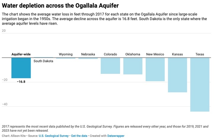 ကမ္ဘာ့အကြီးဆုံး စိုက်ပျိုးကဏ္ဍထုတ်လုပ်သူဖြစ်သည့် အမေရိကန်နိုင်ငံသည် အိုဂါလားလာ(Ogallala) ဟု ခေါ်သော ဧရာမ မြေအောက်ရေအောင်းလွှာကြီးတစ်ခုကို ပိုင်ဆိုင်သည်။ စတုရန်းကီလိုမီတာ ၄၅၀ဝဝဝ ကျယ်ပြီး အမေရိကန် နိုင်ငံ၏ ပြည်နယ်ရှစ်ခုအောက်တွင် ဖြန့်ကြက်တည်ရှိသော အိုဂါလားလာမြေအောက်ရေအောင်းလွှာ၏ ရေမျက်နှာပြင်သည် မြေပေါ်မှ ၁၅ မီတာနှင့် မီတာ ၉၀ ခန့်အတွင်း၌ ရှိသည်။ ထုတ်ယူသုံးစွဲနိုင်သည့် မြေအောက်ရေထုထည် ကုဗကီလိုမီတာ ၄၁၀ဝ ခန့်ကို သိုလှောင်ထားသည်။ အမေရိကန်နိုင်ငံ စိုက်ပျိုး မွေးမြူရေး ထုတ်ကုန်လုပ်ငန်း၏ ၃၀ ရာခိုင်နှုန်းခန့်သည် အိုဂါလားလာရေများကို အသုံးချနေရသည်။ ရေအောင်းလွှာနယ်နိမိတ် အတွင်း နေထိုင်သူ ၈၂ ရာခိုင်နှုန်း၏ သောက်သုံးရေများသည် အိုဂါလားလာရေအောင်းလွှာမှ ထုတ်ယူပေးဝေခြင်း ဖြစ်သည်။