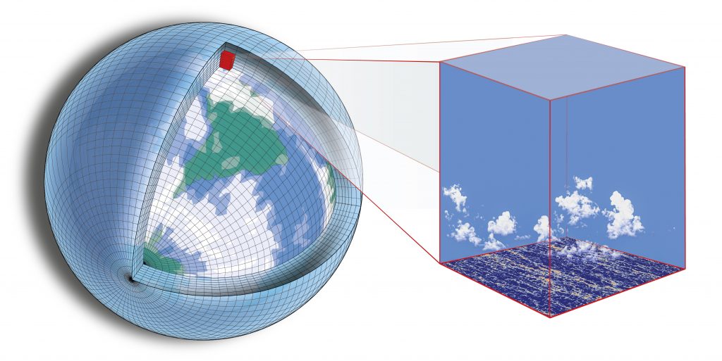 ရာသီဥတုကွန်ပျူတာမော်ဒယ်သည် မိုးလေဝသမော်ဒယ်ထက် အဆပေါင်းများစွာ ရှုပ်ထွေးသည်။ ရာသီဥတုကွန်ပျူတာမော်ဒယ်ဖြင့် တွက်ချက်ရာတွင် ကမ္ဘာ့လေထုကို အောက်ပါပုံအတိုင်း ရုပ်လုံးကြွယူနစ် တစ်ခုစီအဖြစ် ခွဲထုတ်ကာ သီးခြားယူနစ်တစ်ခုစီအပြင် ယူနစ် အချင်းချင်းဆက်စပ်ပြောင်းလဲမှုကိုလည်းလေ့လာ အဖြေထုတ်ကြသည်။